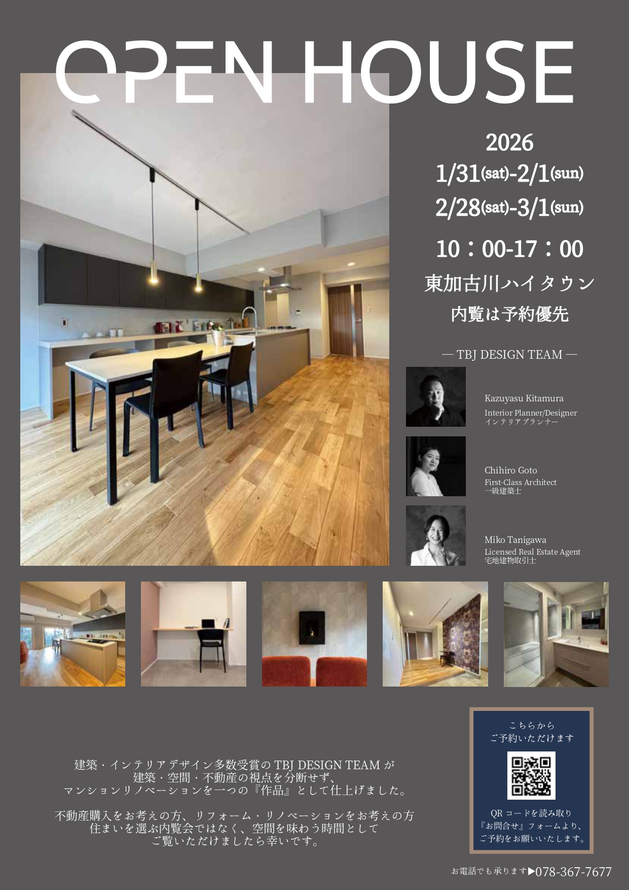 建築・インテリアデザイン・不動産の視点を分断せず、TBJ DESIGN TEAM が一つの「作品」として仕上げたマンションリノベーション東加古川ハイタウン D107 にて、オープンハウスを開催いたします。